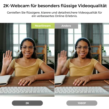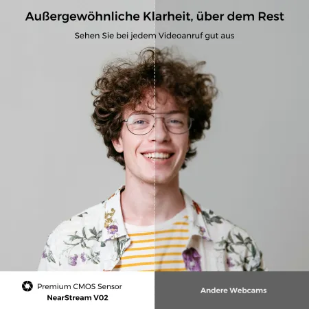 NearStream V02AF 1080P 60FPS Webcam mit geräuschunterdrückendem Mikrofon, Softwaresteuerung, einstellbarem Sichtfeld (FOV), Plug & Play