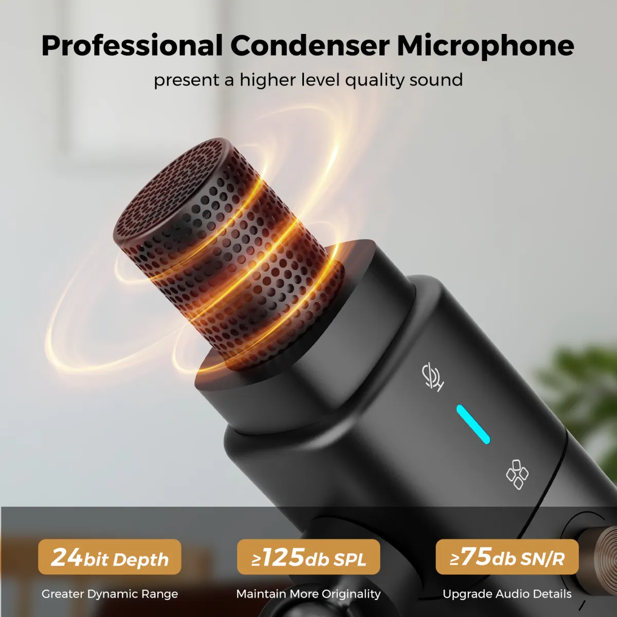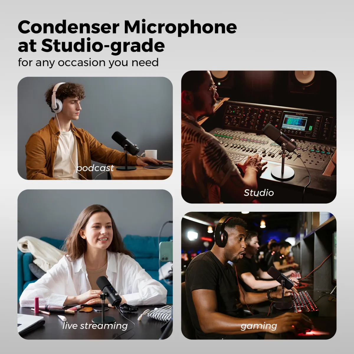 Ideal Podcast, Streaming, Gaming, Studio Mic with Gain Control, Noise Canceling, Plug & Play, Compatible with PC/Mac/PS4/PS5