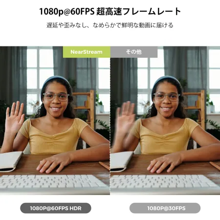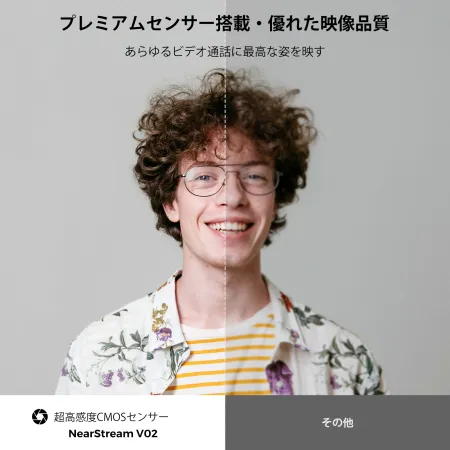 軽量設計、視野角調整可能、NearSyncソフト対応、ノイズキャンセリングマイク、オートフォーカス機能搭載