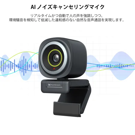 NearStream V02AF 1080P 60FPS ウェブカメラ|ノイズキャンセリングマイク搭載、ソフトウェア制御、調整可能な視野角、プラグアンドプレイ