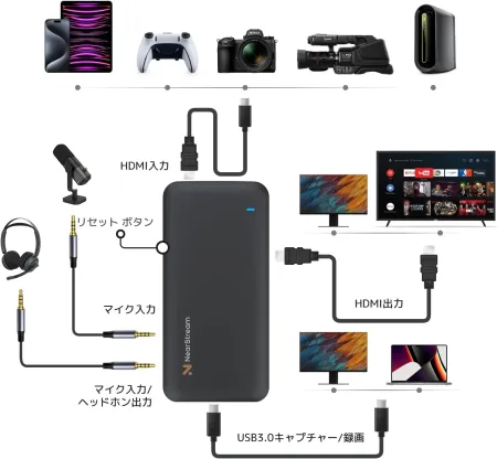 HDMI(4K 60Hz、下位互換あり)、HDMIキャプチャカード対応