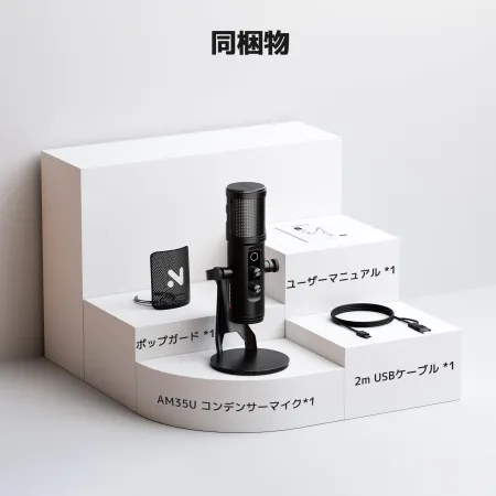 コンデンサーマイク本体 * 1 デスクスタンド * 1 ポップフィルター * 1 USB-Cケーブル * 1